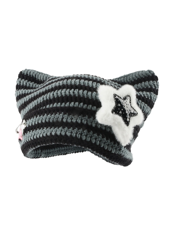 Beanie-Mütze mit Katzenmotiv und Sternendekor