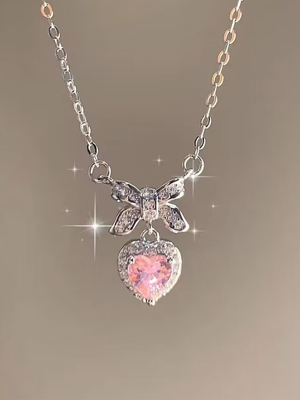 Süße glitzernde Schleife-Rosa-Herz-Anhänger-Halskette€386,00€163,00 Ausführung wählen