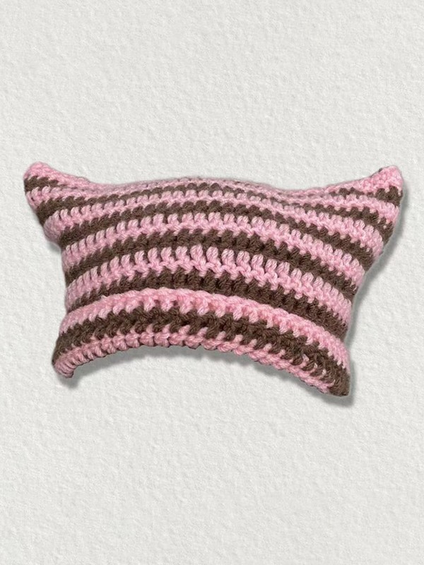 Handgefertigte gestreifte Strickmütze mit Horndetail