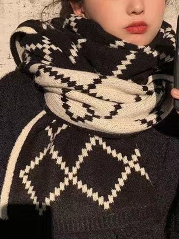 Vintage Rhombus Jacquard langer Schal