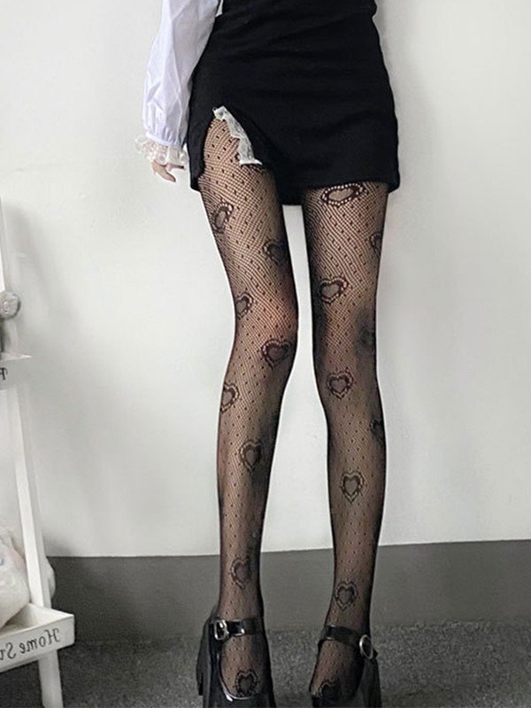 Lange Socken mit Schleifenmuster und Mesh-Einsätzen