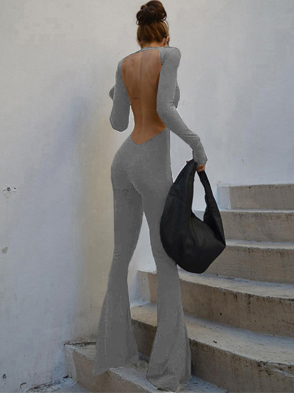 Rückenfreier Langarm-Jumpsuit mit ausgestelltem Bein