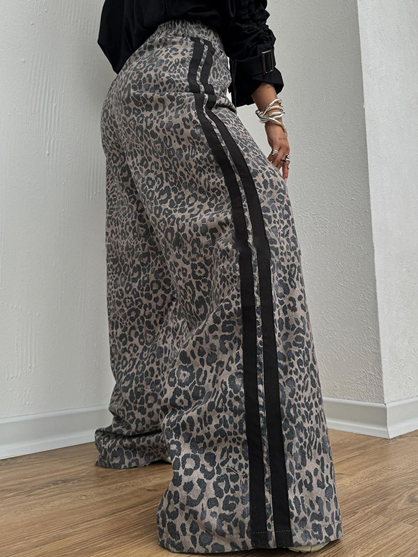 Hose mit weitem Bein und Leopardenstreifen an der Seite