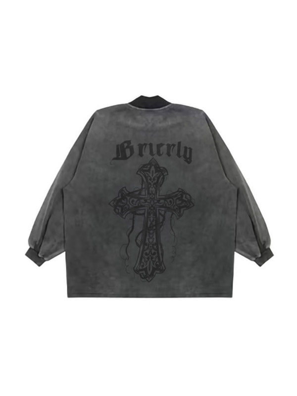 Herren-Sweatshirt mit Distressed-Kragen-Ausschnitt und Kreuzdruck