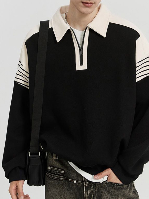 Kontrastfarbenes Strick-Sweatshirt mit halbem Reißverschluss für Herren