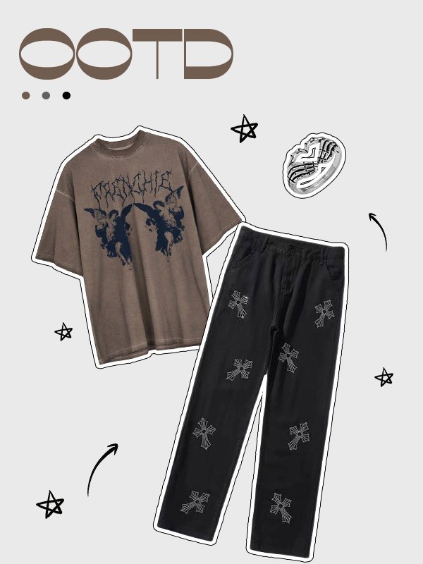 Übergroßes Kurzarm-T-Shirt mit Vintage-Graffiti-Schmetterling