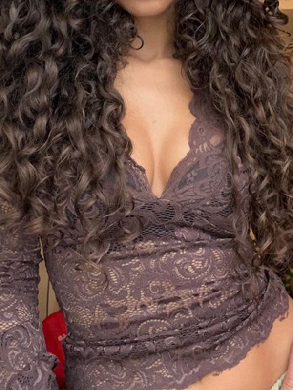 Ausgestelltes Langarm-T-Shirt mit Spitze und V-Ausschnitt