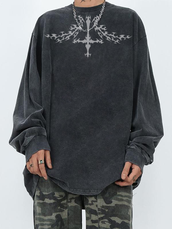Übergroßes Langarm-T-Shirt mit Kreuz für Herren