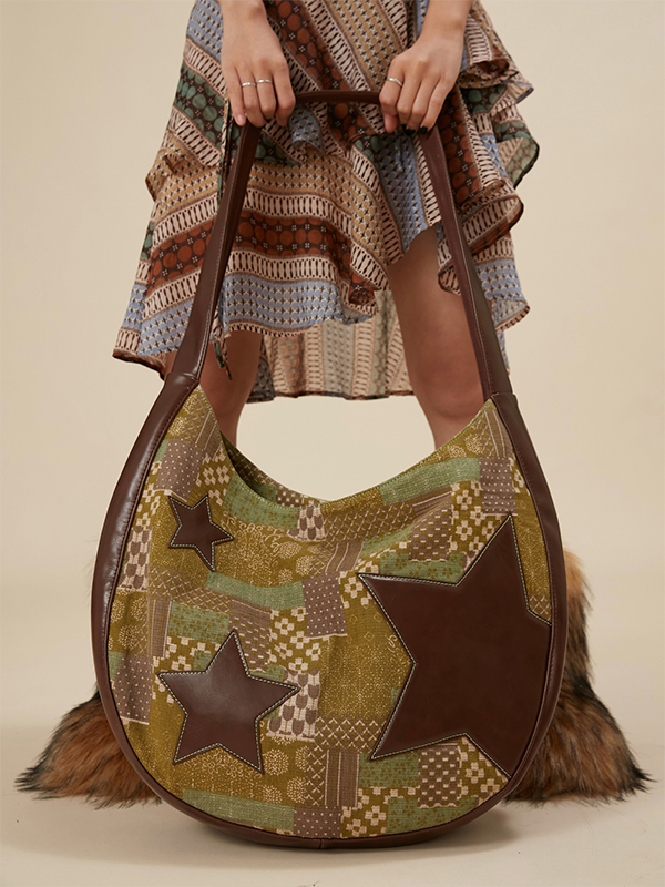 Umhängetasche aus bedrucktem, gespleißtem Leder mit großem Fassungsvermögen