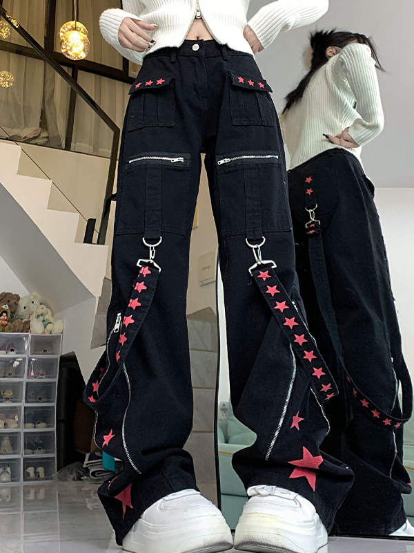 Cargo-Jeans mit kontrastfarbenem Band und Metallverzierung
