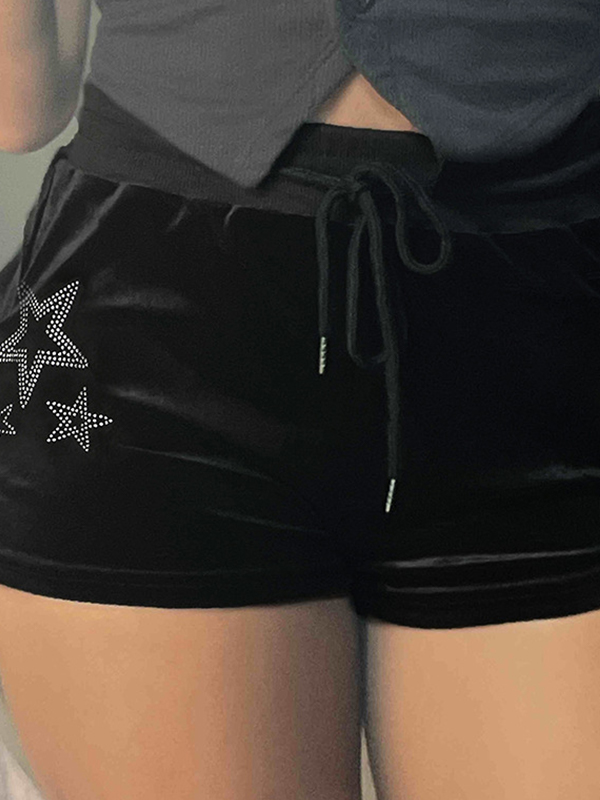 Y2K Hot Diamond Pentagramm Samt Shorts