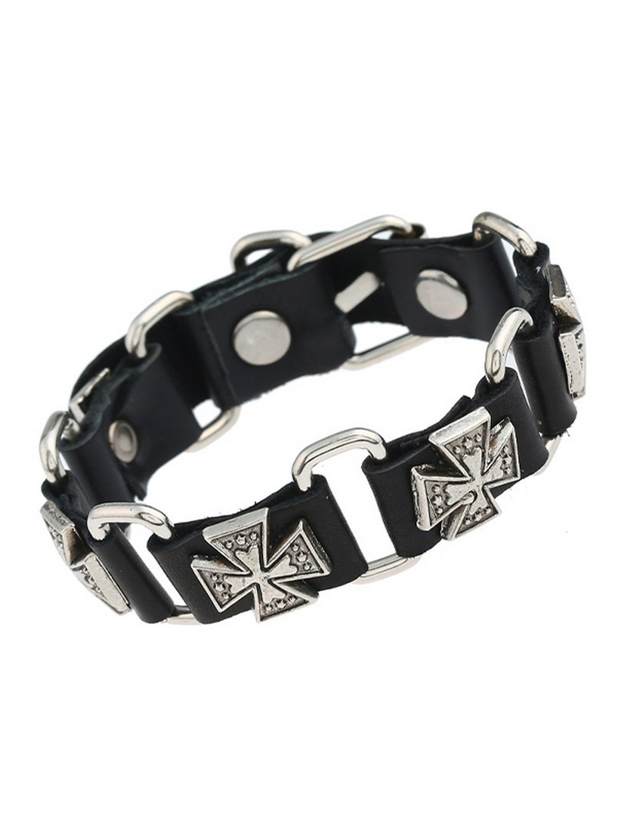Herren-Kreuzmuster-Pu-Leder-Gliederarmband