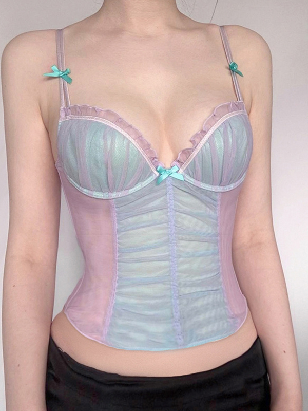 Pure Lust – Camisole-Oberteil aus Netzstoff mit Patchwork-Muster und Farbblockdesign
