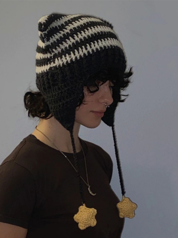Handgefertigte Strickmütze mit Katzenohrstreifen