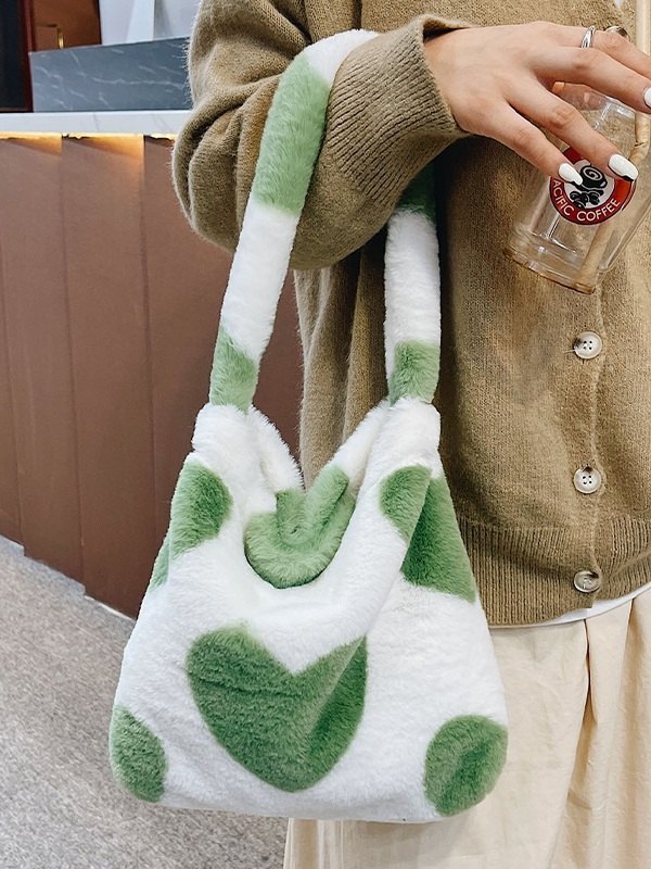 Fuzzy-Schultertasche mit Herzmuster