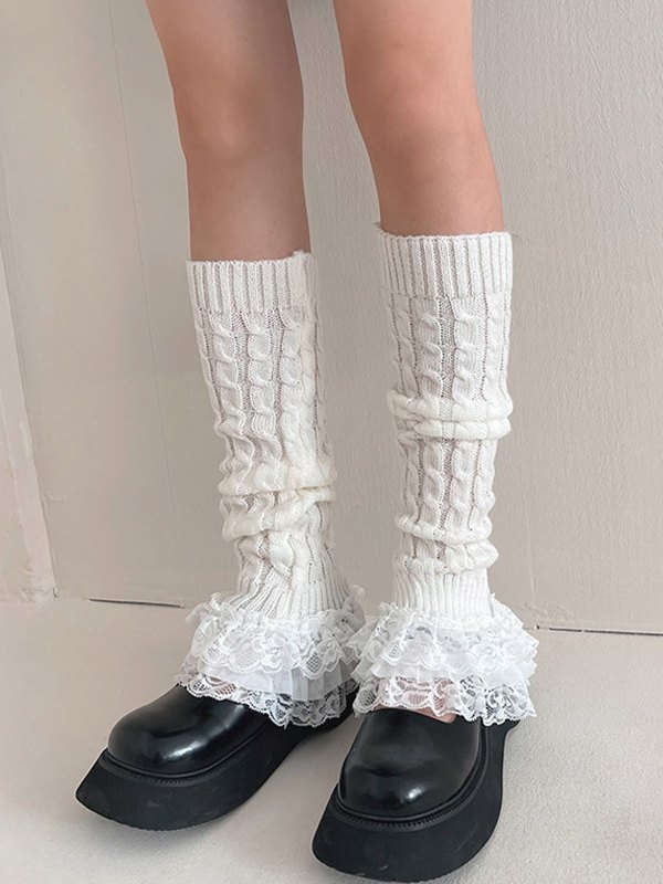 Rüschen-Spitzen-Kabelstrick-Beinwärmer