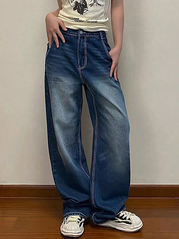 Boyfriendjeans im amerikanischen Stil mit verwaschenem Used-Look
