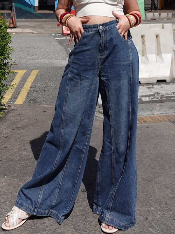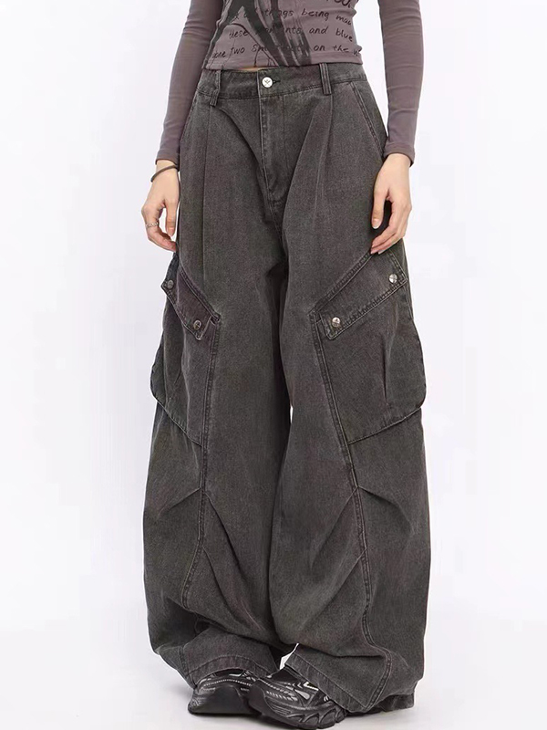 Boyfriendjeans mit weitem Bein und Taschendesign