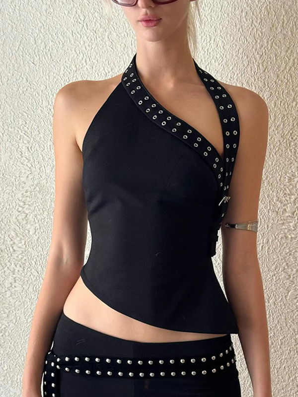 Eng anliegendes Cami-Top mit Metalllöchern und schrägen Schultern