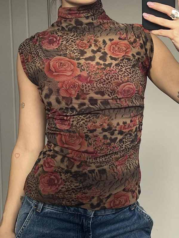 Camisole-Top mit Leopardenmuster, Schleife und Spitze