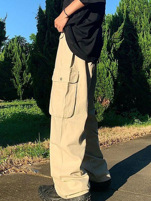 Herren Vintage Braune Cargohose mit großen Taschen und gebundenen Füßen