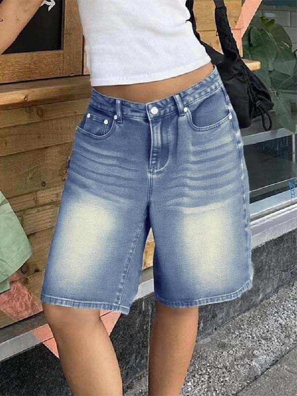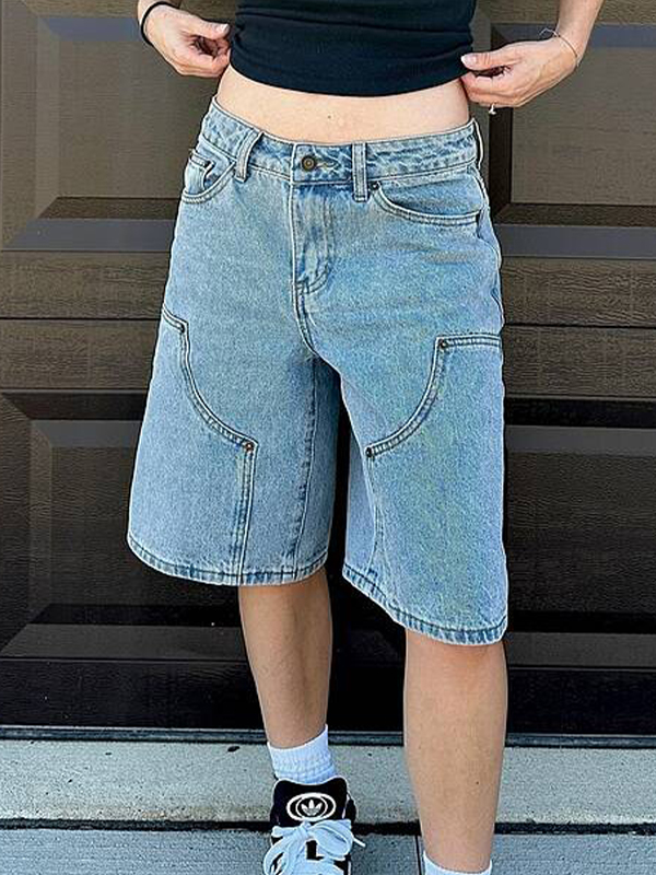 Schlankmachende Jeansshorts mit Leopardenmuster und Taschen