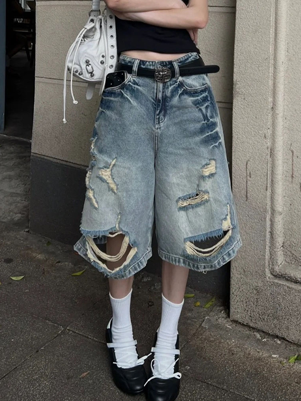 Niche – Dekonstruierte Jeansshorts in Waschung