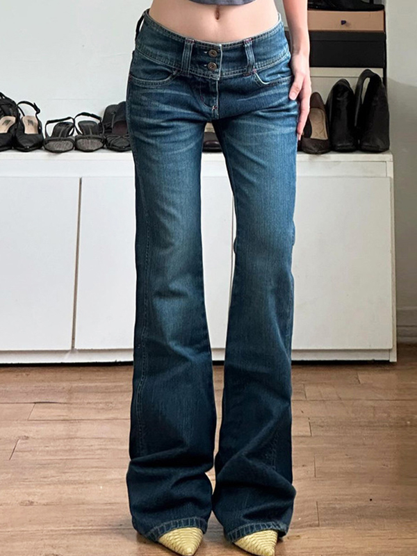 Schlankmachende Basics-Jeans mit niedriger Taille und vielseitiger Schlaghose
