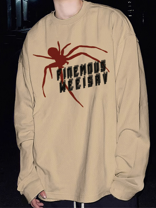 Herren-Langarm-T-Shirt mit Buchstaben- und Spinnenmuster