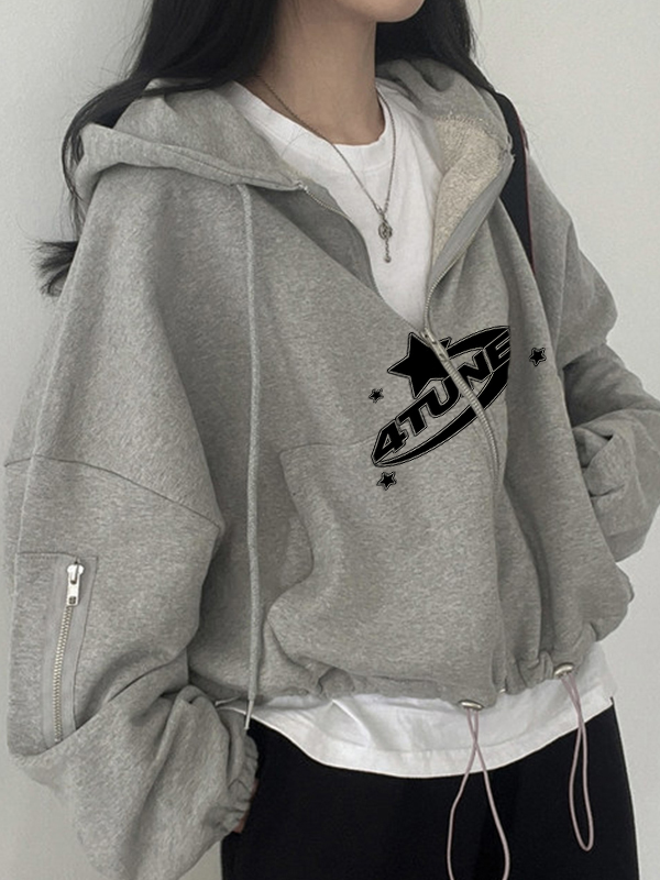 Übergroßer Kapuzenpullover mit Stern-Buchstaben-Print, Reißverschluss und Kordelzug am Saum
