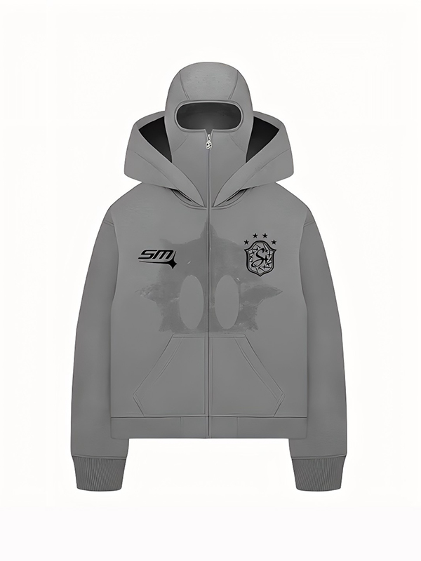 Herren-Hoodie mit Reißverschluss und Buchstabe-Schädel-Grafik