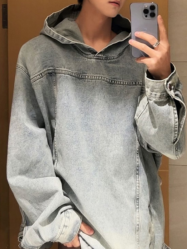 Übergroßer Kapuzenpullover aus gewaschenem Vintage-Denim für Herren