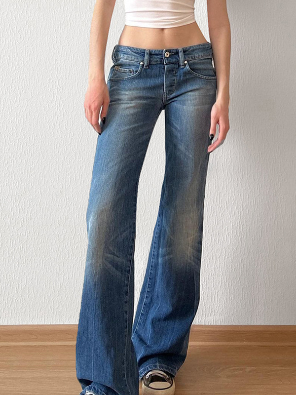 Schlankmachende Basics-Jeans mit niedriger Taille und vielseitiger Schlaghose