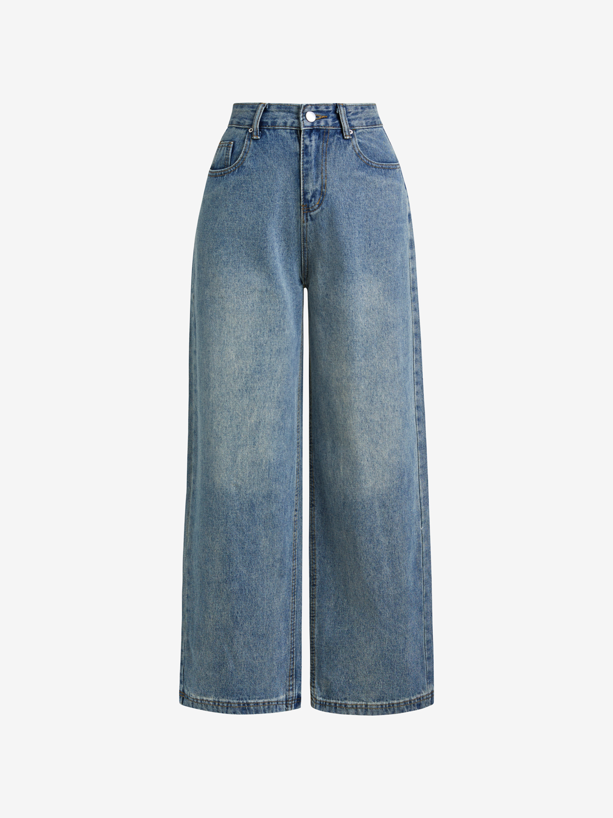 Weite Jeans mit ausgewaschenem Saum und weitem Bein