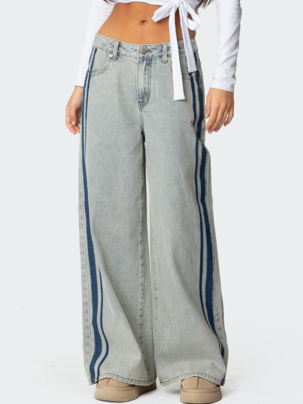 Jeans mit verwaschenem Low Rise und seitlichen Streifen