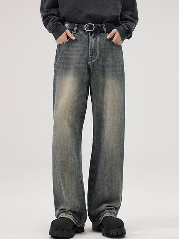 Lockere Jeans im American Retro Heavy Industry-Stil mit gewaschenem Bambusmuster