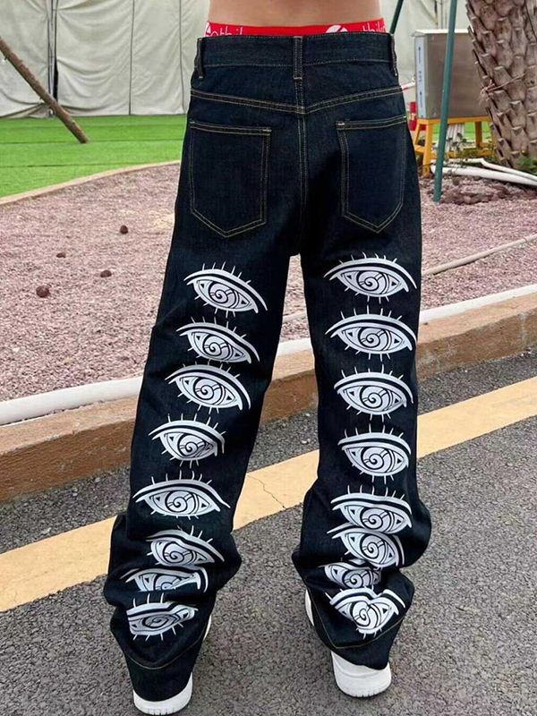 Herren-Jeans mit geradem Bein und bestickter Distressed-Rückenstickerei