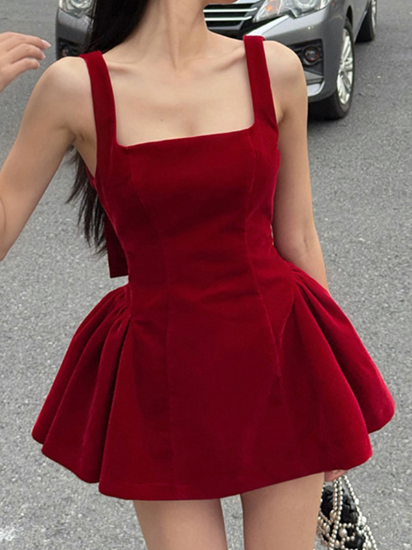 Rückenfreies Minikleid mit Schnürung und quadratischem Ausschnitt