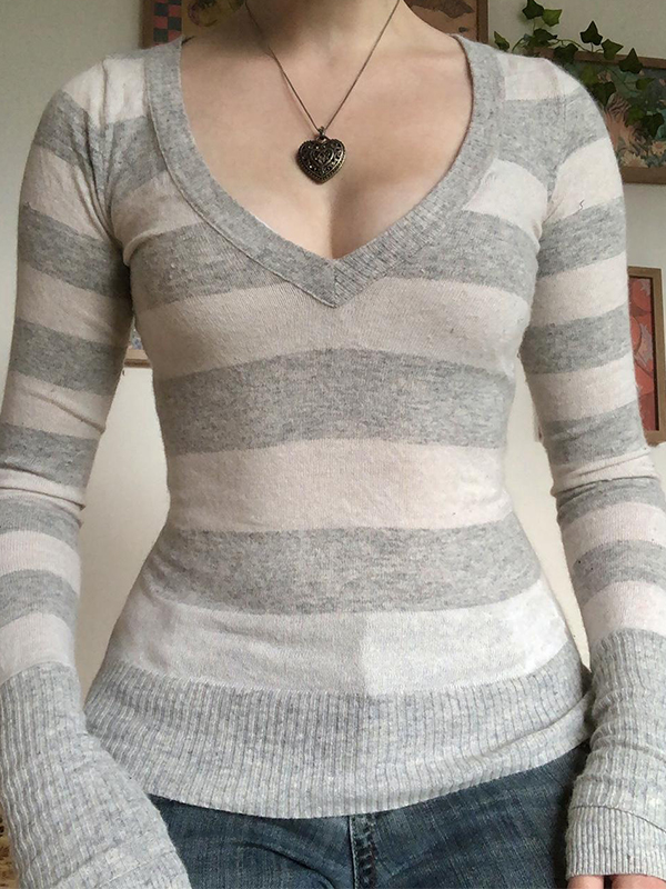 Gestreifter Langarm-Strick mit V-Ausschnitt