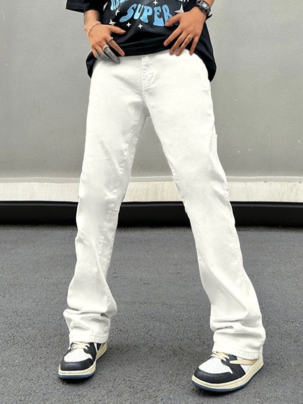 Herren-Jeans mit geradem Bein und bestickter Distressed-Rückenstickerei
