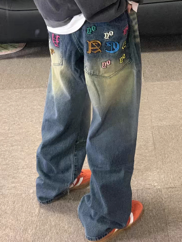 Lockere Jeans mit Street-Letter-Muster für Herren
