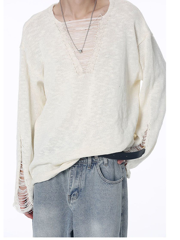 Einfarbiger Herrenpullover mit zerrissenem Design