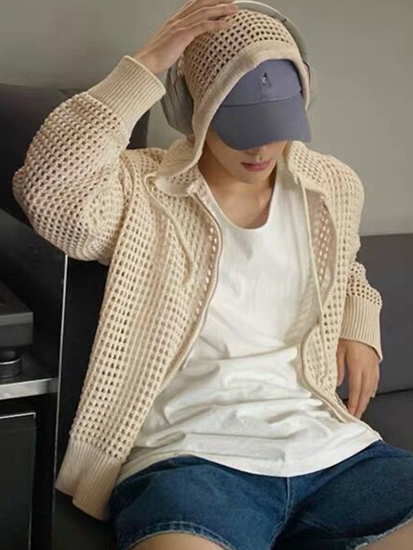 Übergroßer gestrickter Kapuzenpullover mit Cutout und Reißverschluss für Herren