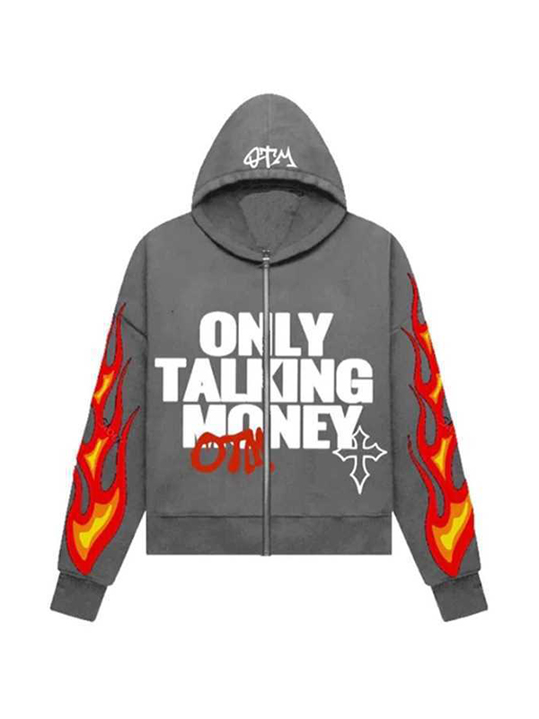 Übergroßer Kapuzenpullover mit Schaumbuchstaben und Flammen-Print für Herren