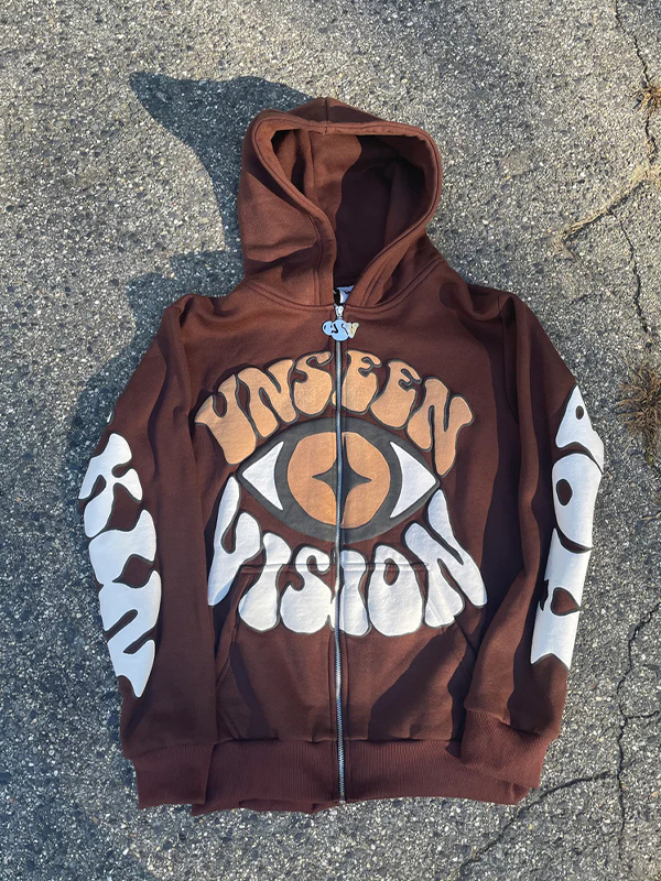 Übergroßer Kapuzenpullover mit Vintage-Kreuz-Grafikdruck und Reißverschluss