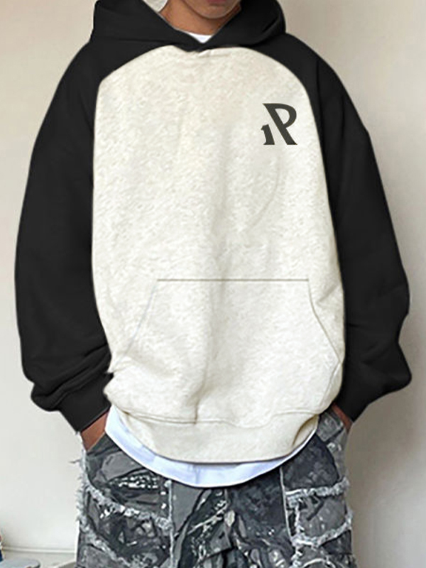 Übergroßer Raglan-Kapuzenpullover mit Buchstaben-Print für Herren