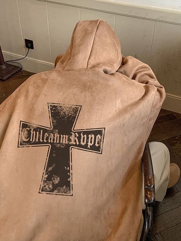 Übergroßer Kapuzenpullover mit Kreuzmuster aus Wildleder für Herren
