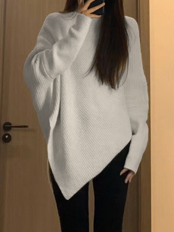 Pullover mit hohem Kragen und unregelmäßigem Saum