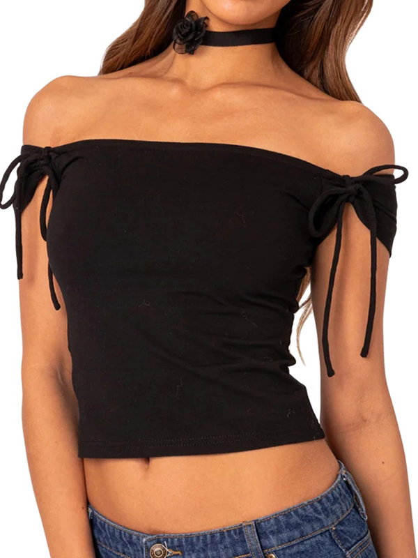 Einschultriges, kurzärmliges T-Shirt mit Rundhalsausschnitt