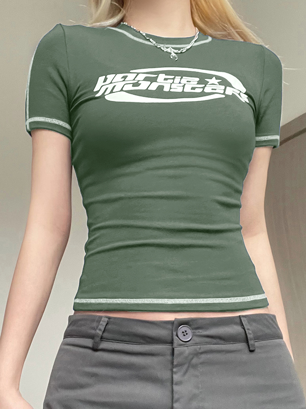 Genähtes Kurzarm-Logo-Grafik-T-Shirt